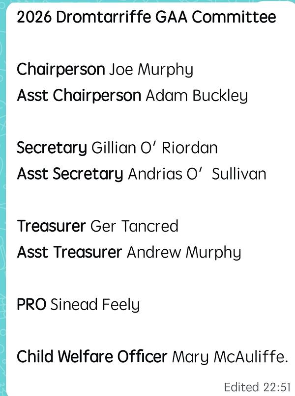 Sinead can be contacted on communications.dromtarriffe.cork@gaa.ie